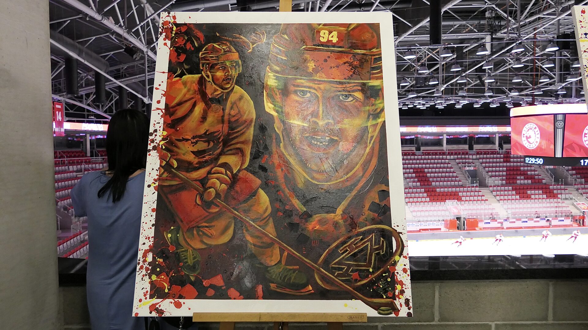 – Najtrudniejszym aspektem było uchwycenie momentów pełnych emocji, w których każdy szczegół odgrywa rolę. No i te białe krawędzie na wszystkich obrazach – spróbuj utrzymać je w czystości podczas 40 godzin pracy z farbami! (śmiech) Najłatwiejsze momenty to te, w których inspiracja całkowicie mnie pochłania, a pociągnięcia pędzla płyną naturalnie. Każdy obraz miał takie momenty, ale także trudne części. Pracuję zarówno z konkretnymi zdjęciami i nagraniami z hokeja, jak i z własną wyobraźnią. Moim celem nie jest osiągnięcie pełnego realizmu, ale uchwycenie energii, emocji i historii stojącej za każdym dziełem.